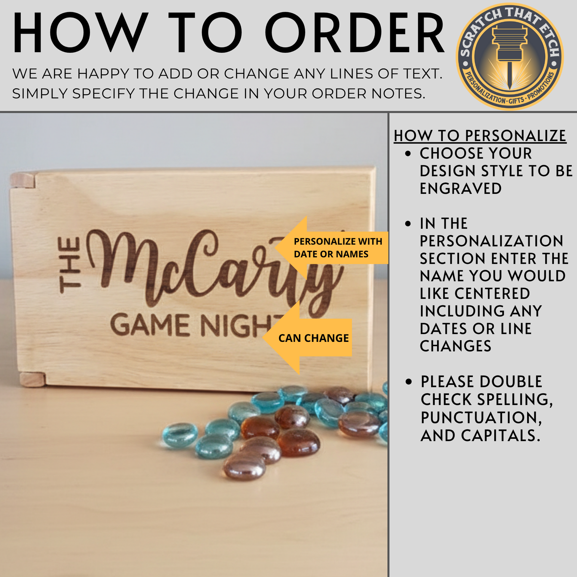 Celebrate strategy and connection with a folding wood mancala set you can make your own. Scratch That Etch personalizes every board to your vision with names, dates, meaningful messages, coordinates, or a logo. Each set includes blue and brown sowing stones and a smooth folding board that packs easily for travel and tidy storage. Whether you are commemorating a wedding, anniversary, or housewarming, this heirloom ready game becomes a one of a kind keepsake and a centerpiece for family game night. Share your details and style notes at checkout and we will personalize with care so your mancala arrives ready to play and ready to display.